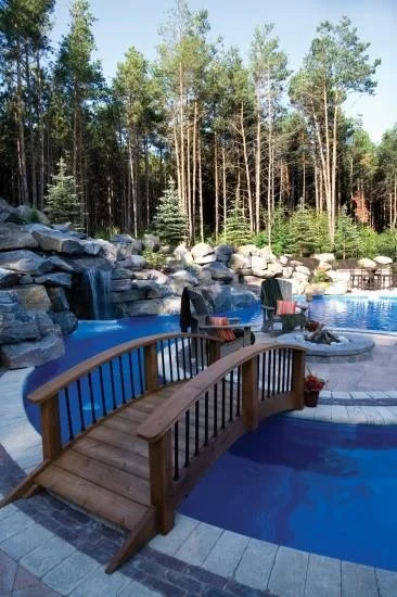 A fire pit does a great job of creating a soothing atmosphere, much like a backyard pond. When placed alongside a pond, the slightest breeze will make amazing reflections of the dancing flames. A pebble “beach” or a flagstone patio are both great surfaces on which to place comfortable seating.
